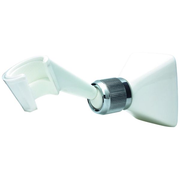 Arrow 26101 er en hvid håndbruserholder med bevægeligt kugleled, til vægmontering. Holderen er lavet af nylon og har en møtrik i forkromet messing. Velegnet til G1/2 møtrik.