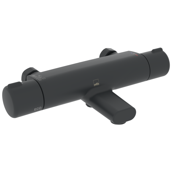 Oras Nova termostatisk mixer til brusebad og badekar, med fast udløbstud og temperaturknap med sikkerhedslås ved 38°C. Volumenknap med integreret keramisk afleder og styring til Eco-flow. Blanderen er udstyret med kontraventiler og snavsfiltre.
