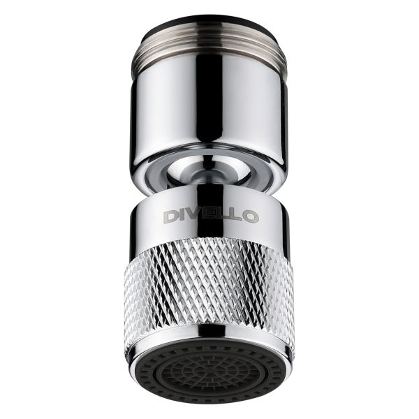 Strålesamler med kugleled til køkkenarmatur (i.g. M22 x 1 mm eller u.g. M24 x 1 mm). DIVELLO ORIGINAL™: Armaturuafhængigt og optimerende originalprodukt. DIVELLO FULL FLOW S-TECH™: Forbedret vandkomfort uden begrænsning af vandflowet. Oplev et kraftigt strålebillede med optimal skyllekomfort. Kalkafvisende inderdele. Shower Spray: Skift mellem traditionel stråle og brusestråle via et skånsomt drejeregulering.