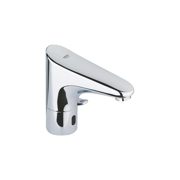 Europlus E infrarød elektronisk håndvaskarmatur 1/2" med blandeenhed og justerbar temperaturbegrænser, med infrød sensor til tovejskommunikation til overvågning, konfiguration og serviceformål, med stikprop 100-230 V AC, 50-60 Hz, 6 V DC, GROHE StarLight kromoverflade, GROHE EcoJoy perlator/strålesamler 5,7 l/min, fleksible tilslutningsslanger, kontraventil, indløbssiem, magnetventil, GROHE QuickFix system til hurtig montering, 7 forudindstillede programmer, automatisk skyl, termisk desinfektion, rengøringstilstand, yderligere funktionalitet og præcis indstilling med fjernbetjening 36 407, CE-nummer, lydklassificeret iht. DIN 4109, IP 59K-klassificering, min. driftstryk: 1,0 bar