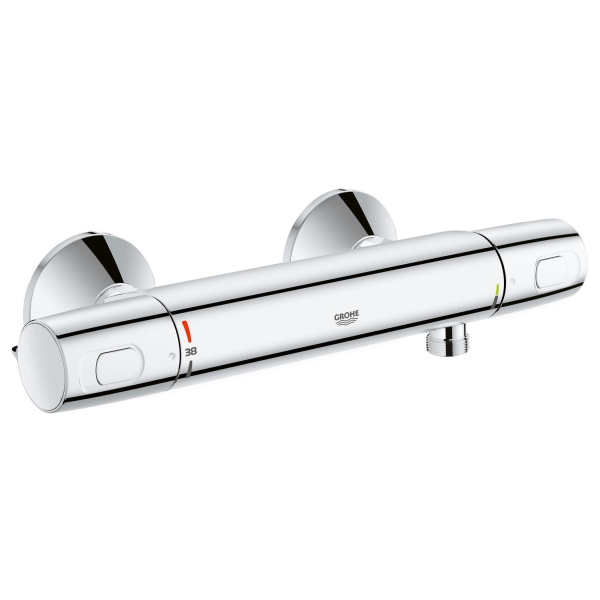 Du kender den der følelse, når du tager et brusebad, og vandet pludselig bliver iskoldt, fordi nogen åbner en hane et andet sted i huset? Så er det tid til en GROHE brusetermostat: produceret med GROHE TurboStat-teknologi, som sørger for pålideligt at holde den valgte vandtemperatur konstant under hele brusebadet. Af hensyn til sikkerheden kan en temperatur på 38 °C ikke overskrides, medmindre SafeStop-knappen bevidst aktiveres. GROHE CoolTouch-teknologi forhindrer, at termostatens armaturhus bliver varmt. For at skåne miljøet kan du bruge den integrerede EcoButton-funktion og spare vand, mens du bader. Med de ergonomisk udformede metalgreb og den rengøringsvenlige, forkromede GROHE StarLight-overfladefinish bliver denne termostat et markant element i badeværelset. Hvis du bruger de eksisterende vægtilslutninger, kan du installere og tage den nye termostat i brug på ingen tid.