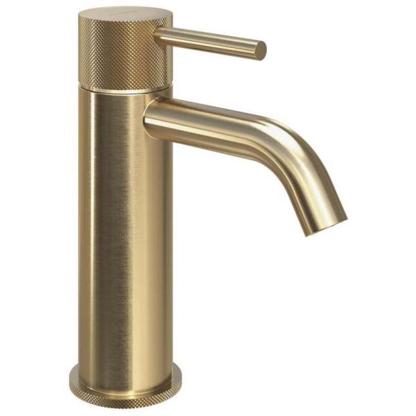 Håndvaskarmatur Skule 21,5x25x11, børstet messing, med etgrebs.