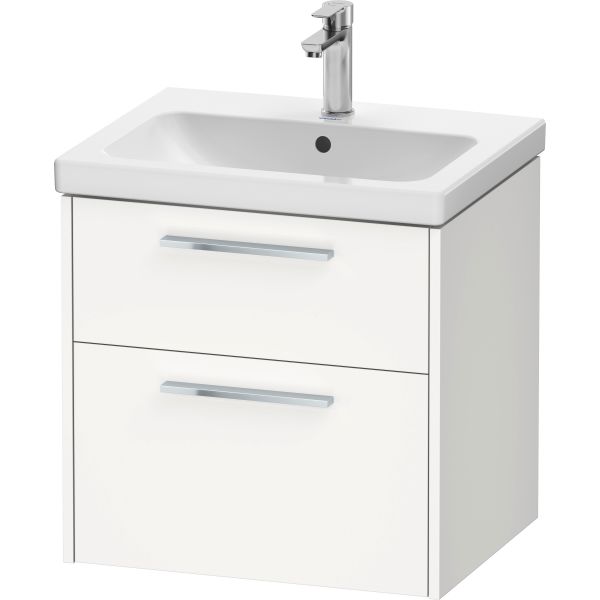 Duravit D-Code underskab til håndvask med 2 udtræksskuffer, helt i hvid mat melamin, til håndvask D-Code #239960, greb i krom. Håndvask medfølger ikke.