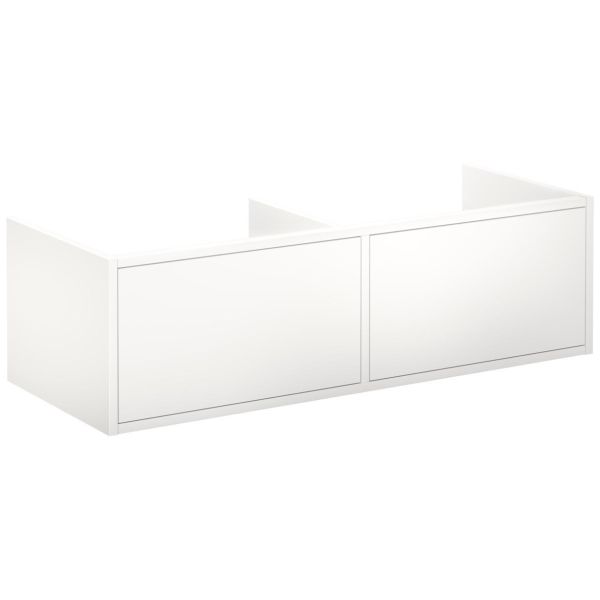 Varenr.: 4075760Hvid kommode, der kan kombineres med håndvask i porcelæn eller stenbordplade med understel. Skufferne giver rummelig opbevaringsplads uden behov for udskæring til vandlås.