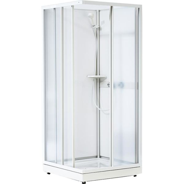 Varenr.: 2810960Brusekabine på 800 x 800 mm i styr. Lavere model til rum med begrænset lofthøjde. Brusekabinen har hjørneindgang og skydedøre. Bruser er glat, hygiejnisk og let at holde ren. Brusekabinen har hvide bagtæpper, der effektivt skjuler eksempelvis væg- og rørinstallationer, og derfor også passer ind i eksempelvis vaskerummet eller sommerhuset.
