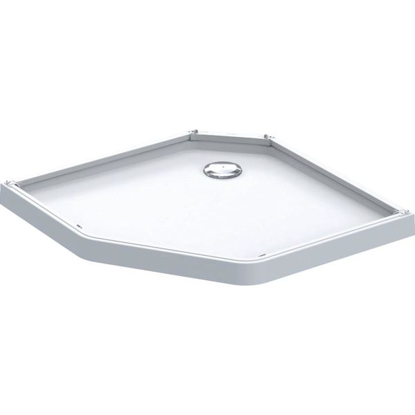 Ifö Showerama er en femkantet brusebakke. Med mål B = 80 cm, L = 90 cm. Hvid/blank.