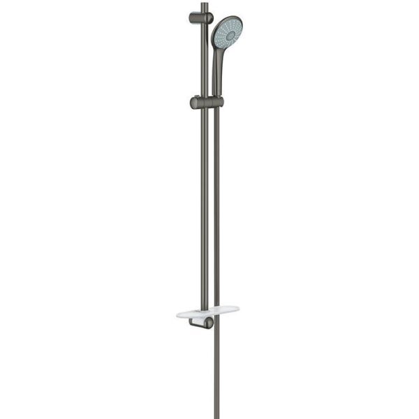 Varenr.: 2811164Brusesystem med håndbruser, bakke og brusestang. Bruseren har tre forskellige strålemønstre at vælge imellem og er nem at installere takket være Grohe QuickFix-systemet.