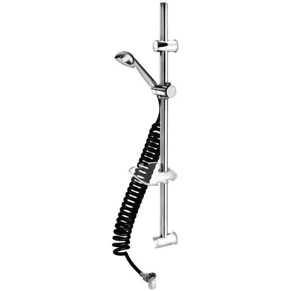 Varenr.: 2363475Brusesæt bestående af håndbruser, sort spiralslange, afløbsventil, hylde med praktiske kroge og justerbart vægbeslag.