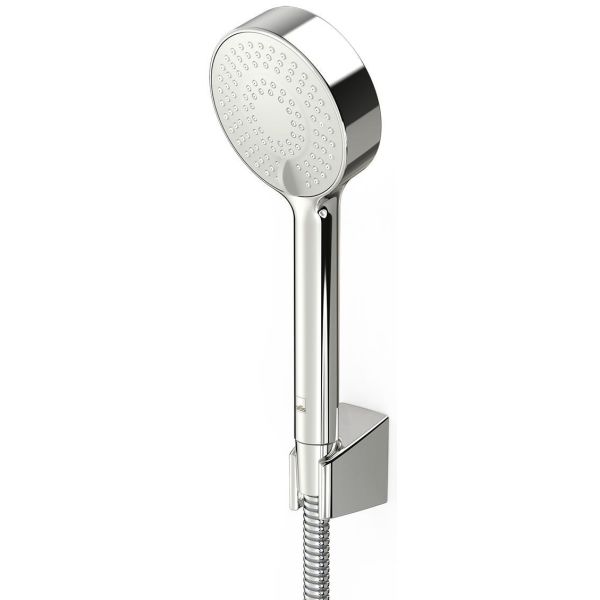 Oras Apollo brusesæt krom/grå, bestående af en håndbruser med tre jetpositioner, Eco-flow, vægbeslag og en bruseslange.