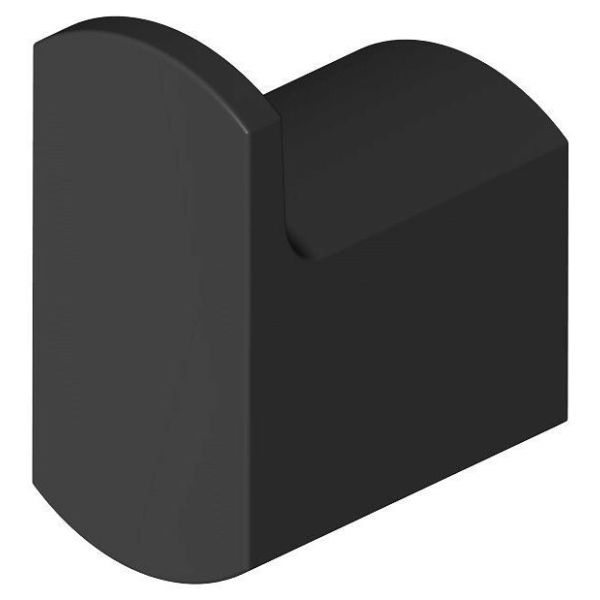 Håndklædekrog i eksklusivt design med lige linjer og afrundede hjørner. Lavet af metal, enkelt krog. Kan limes eller skrues.