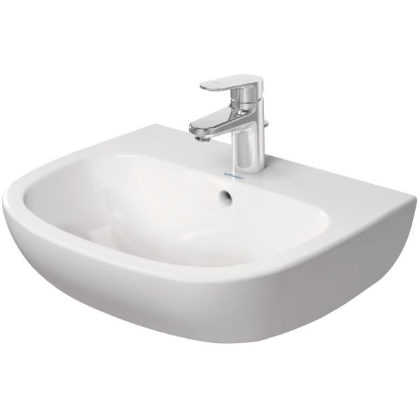 Duravit D-Code håndvask 550 mm, hvid højglans, armaturhulsplatform, antal armaturhuller: 1, overløb – 23105500002
