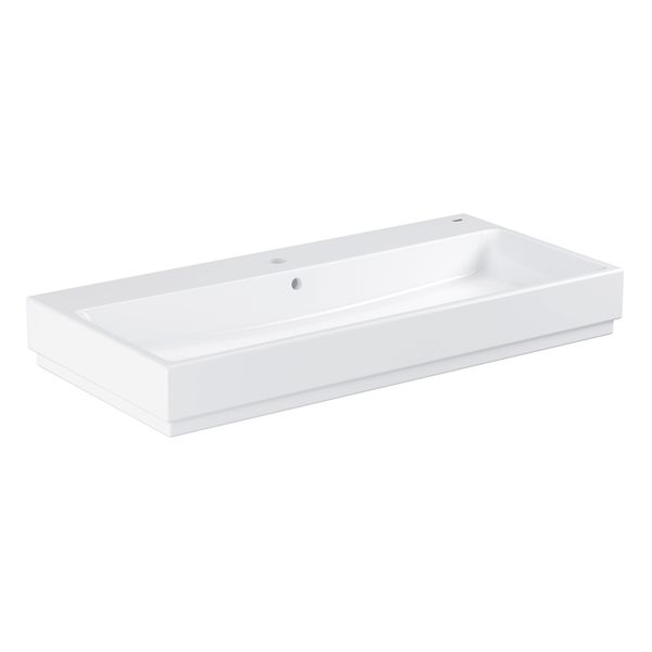 GROHE Cube Ceramic er et 1000x490 mm bordmonteret håndvask med overløb. Det slanke, rene og moderne udtryk på GROHE Cube Ceramic 100-håndvasken giver kølige flader og rene linjer til dit badeværelse. Denne generøse bordmonterede håndvask med målene 1000x490 mm er skabt med rene former og funktionalitet for øje og er fremstillet af de nyeste materialer. Håndvaskens ildfaste keramik i blank Alpine White giver en slidstærk overflade, som bevarer sit flotte udseende i mange år fremover. Derudover forhindrer den innovative GROHE PureGuard-overfladebehandling ophobning af bakterier og afviser snavs og kalk for en blank og let rengøringsvenlig løsning.