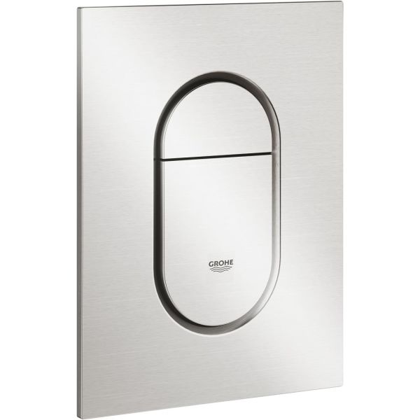 Grohe Arena Cosmopolitan er en skylleplade til pneumatisk afløbsventil AV1, til indbyggede cisterner. Udstyret med dual-flush eller small-flush teknologi samt start-stop-kontrol, der gør det muligt at stoppe skylning for tidligt. Overfladen er behandlet med Grohe StarLight, som gør pladen nem at rengøre. Installation er enkel og kræver ingen specialværktøjer.