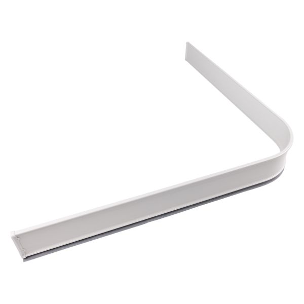 Helbøjet 92x92 cm brusesokkel (bruseliste) i aluminium med elastisk gummiliste. Tætner effektivt mod varierende gulvoverflader uden fastmontering eller fugning og forhindrer vand i at løbe ud af bruseområdet.