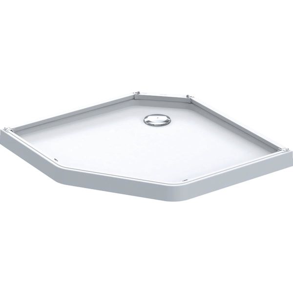 Ifö Showerama er en femkantet brusebakke. Med mål B = 90 cm, L = 80 cm. Hvid/blank.