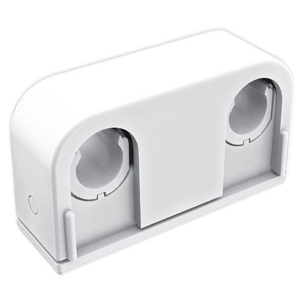 Faluplast Duo Contact 14610 er en hvid dobbeltklemme til limning, der passer til rør med 12/15/16 mm Dy. Har en C/C afstand på 40 mm og en C/V måling på 22 mm. Til installation i vådzone.
