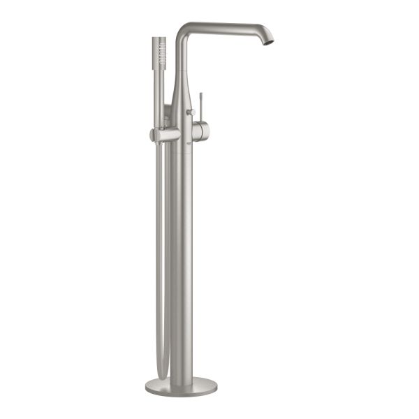 Den gulvstående GROHE Essence-etgrebsarmatur til badekar er udført i elegant GROHE SuperSteel og er ideel, hvis du ønsker et fritstående badekar i et stilrent, moderne badeværelse. Den er fyldt med GROHE-teknologi, som gør den meget behagelig og nem at anvende. Vandmængden reguleres glat og præcist takket være GROHE SilkMove-keramisk patron.
