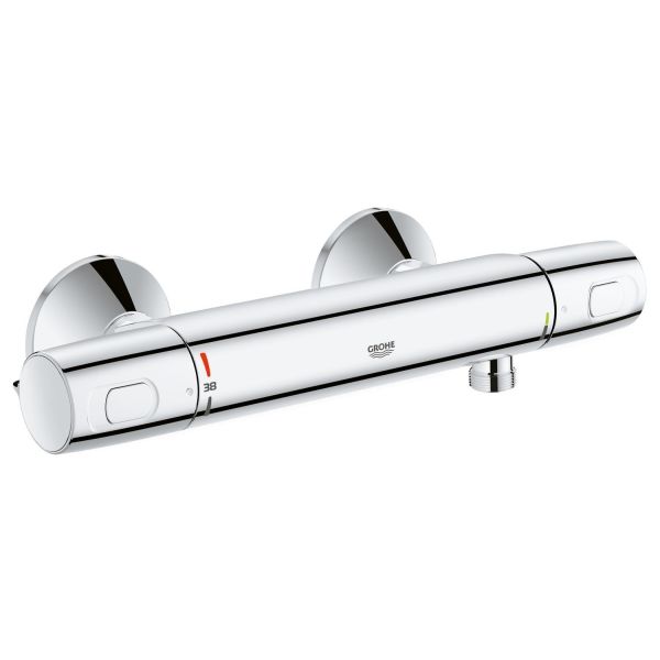 Du kender den der følelse, når du tager et brusebad, og vandet pludselig bliver iskoldt, fordi nogen åbner en hane et andet sted i huset? Så er det tid til en GROHE brusetermostat: produceret med GROHE TurboStat-teknologi, som sørger for pålideligt at holde den valgte vandtemperatur konstant under hele brusebadet. Af hensyn til sikkerheden kan en temperatur på 38 °C ikke overskrides, medmindre SafeStop-knappen bevidst aktiveres. GROHE CoolTouch-teknologi forhindrer, at termostatens armaturhus bliver varmt. For at skåne miljøet kan du bruge den integrerede EcoButton-funktion og spare vand, mens du bader. Med de ergonomisk udformede metalgreb og den rengøringsvenlige, forkromede GROHE StarLight-overfladefinish bliver denne termostat et markant element i badeværelset. Hvis du bruger de eksisterende vægtilslutninger, kan du installere og tage den nye termostat i brug på ingen tid.