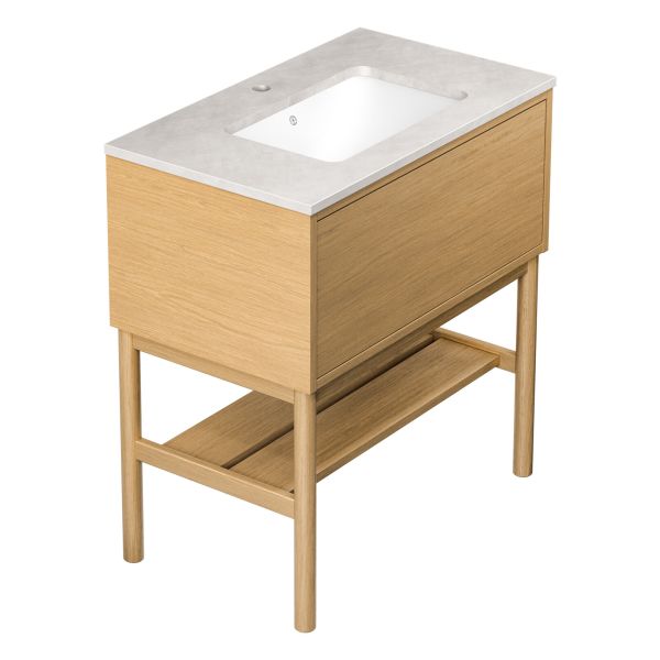med ben, 80 cm, lys eg/grå sten, 1 blandingshul