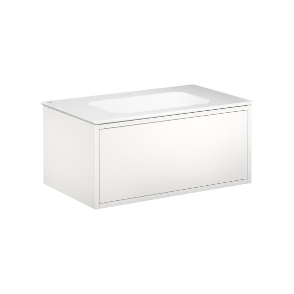Kommode i Ducentic-serien fra Gustavsberg, som kan kombineres med håndvask i porcelæn eller stenbordplade med understel som tilvalg. Håndvasken har et armaturhul til et et-grebsarmatur/en et-hulsblander. Ducentic-kollektionen er en hyldest til det formsprog, der har sat tonen for Gustavsbergs udtryk gennem tiderne. Vandlås medfølger i pakken sammen med håndvask/bordplade. Kommodepakke Ducentic fås i forskellige farver og størrelser med forskelligt antal armaturhuller, med eller uden ben.