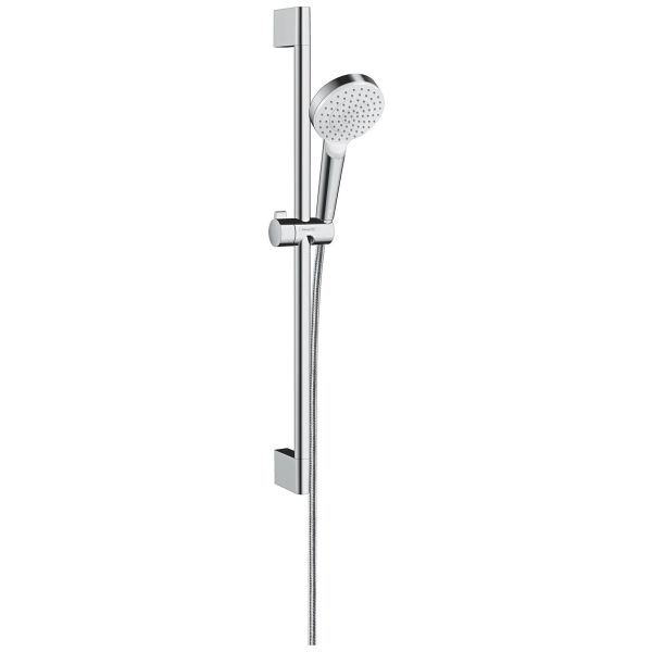 Hansgrohe Crometta håndbrusersæt bestående af håndbruser, brusestang, bruseslange og glidebeslag. Håndbruseren har en hoveddiameter på 100 mm og regnstråle. Maksimal gennemstrømningshastighed på 6 l/min ved 3 bar.