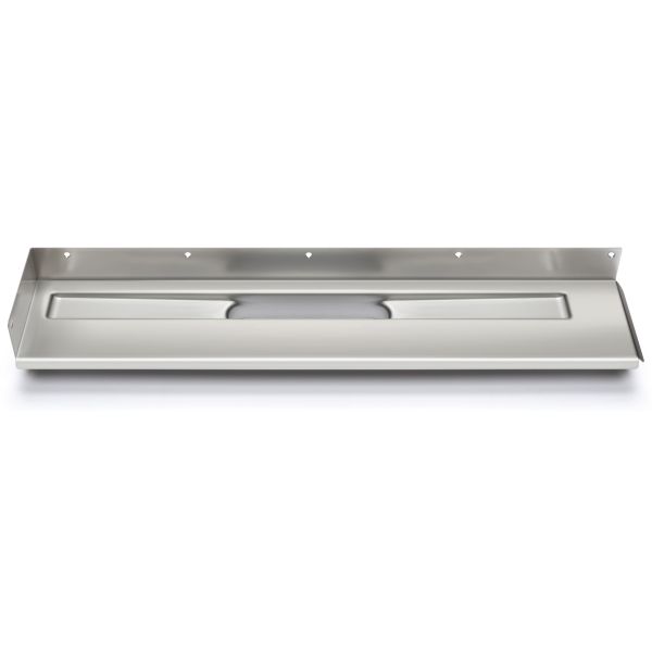 Unidrain 7121890 er et afløbsarmatur med åben højre side og syltet overfladebehandling.