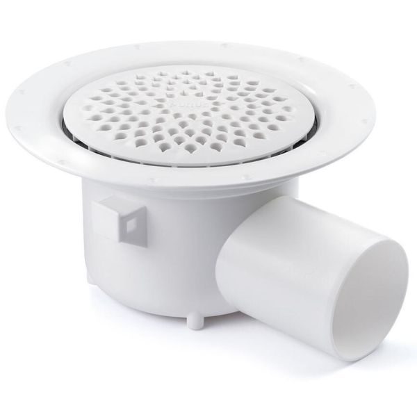 Varenr.: 2815059Gulvafløb med sideudløb og gitterdiameter 150 mm. Med si, spændering og aftagelig vandlåsindsats.