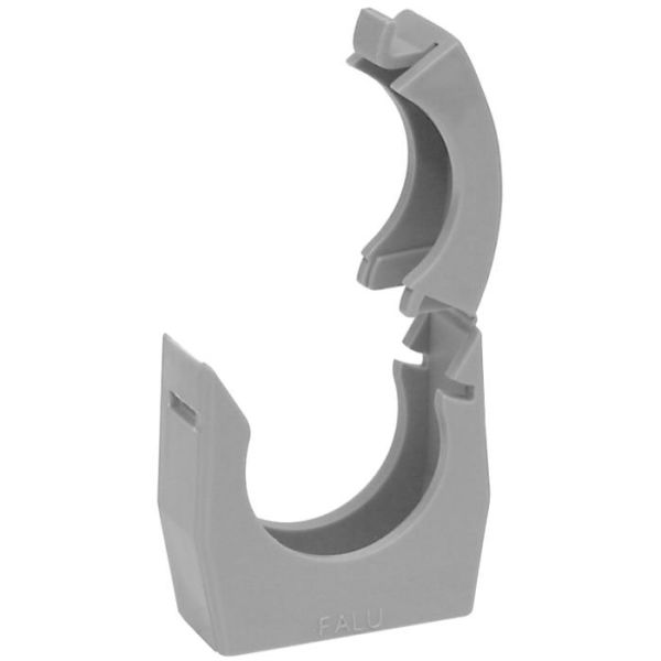 Faluplast 18191 er en grå enkeltrørshæfteklammer med låsbart overfald til rør med en udvendig diameter på 40 mm. Hæfteklammer måler 50 x 60 x 20 mm og er lavet af PP-plast.