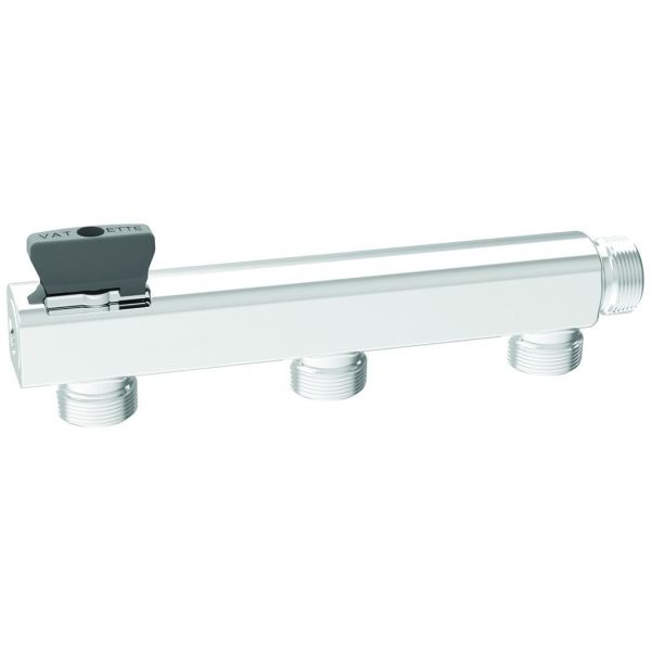 Varenr.: 3051052Vægfordeler til 3 rør, med afspærring, som erstatter fordelerskab og passer bag en kommode. Fordeleren minimerer risikoen for vandskader, fordi alle samlinger er uden for væggen.