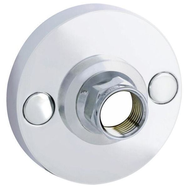 Vægskive designet til afløbsventil og skjult rørføring. Tilslutning G15 inv. gevind til 12/15 Cu, 15 Pex, 16 Pex/AluPex/Pb rør. Koblingssæt og VVS-skrue medfølger. Tilpasset de nye brancheregler i 2021.