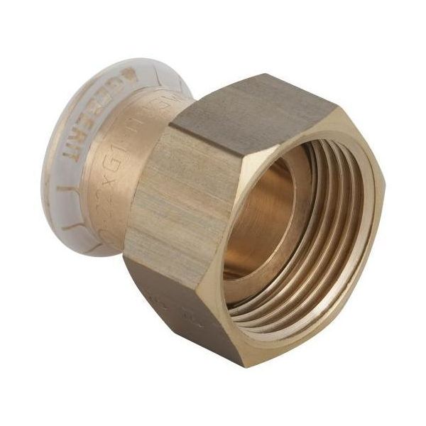 Geberit 1767470 er en koblingende lavet af kobber og med løbende møtrik af rødt tøj.