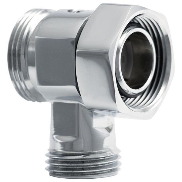 Mellemliggende kobling med afskæring G15 med nedlukning. Monteret mellem mixerbeslag og mixer. Aflevering G15 anvendes til ekstra vandtilslutning til f.eks. vaskemaskiner og lignende.