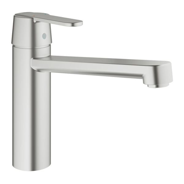 GROHE Get-køkkenarmaturet er en fordel i ethvert moderne køkken med sin kombination af praktiske funktioner, holdbarhed samt rene, enkle linjer. Tudens svingområde på 140° giver fremragende fleksibilitet, samtidig med at den generøse tudehøjde er perfekt til at fylde gryder og kasseroller. Indvendigt sikrer GROHE SilkMove-patronen jævn, blød betjening gennem hele levetiden og præcis regulering af vandmængde og temperatur. Takket være det enkle installationssystem kan et-grebsarmaturet monteres hurtigt og nemt. Derudover giver den matte rustfri stål-overflade en ridsefast og stilren finish, som holder i lang tid.