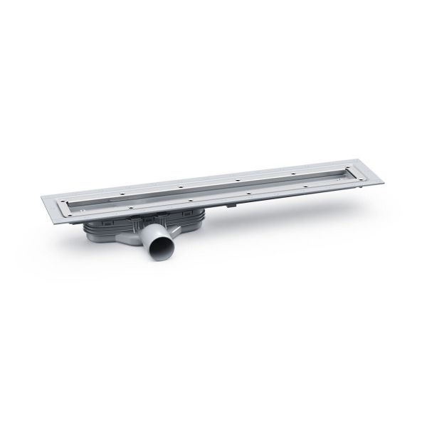 Purus Line Vinyl Plus 600 er en designgulvafløb med 50 mm sideafgang og lav indbygningshøjde på 83 mm til installation i betondæk. Gulvafløbet leveres med udtagelig NOOD-vandlås til gulvafløb, rustfri klemmekarm og monteringssæt til betondæk. NOOD-vandlåsen til gulvafløb forhindrer lugtspredning, selv hvis vandlåsen tørrer ud. Designgulvafløbet skal monteres mindst 200 mm fra væg.