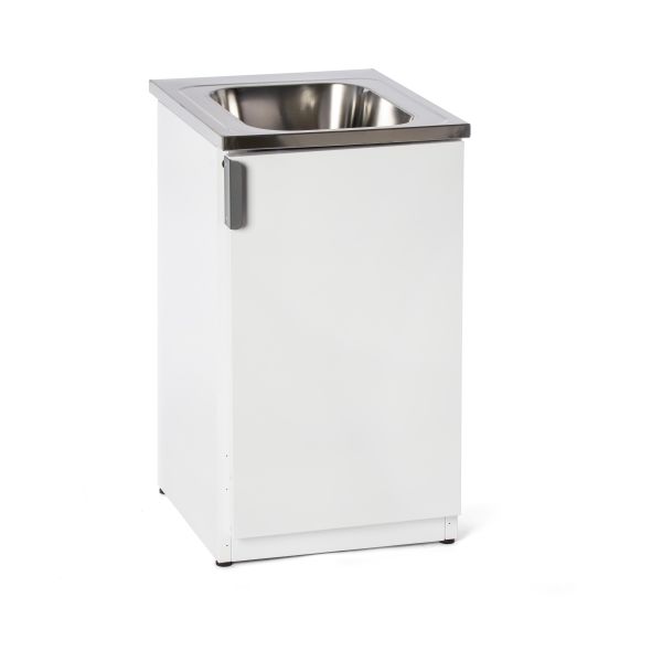 Nimo TB 500 T er en hvid vaskebænk. Leveres helt indklædt med plads til vaskemiddel, børnesikring, dobbelte opbevaringsrum i døren, dørdæmpere, skjulte hængsler og fuldt integreret sokkel.