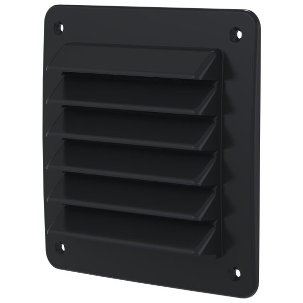 Kvadratisk ydervægsgitter på 150x150 mm, udstyret med forsænkede skruehuller. Materiale med lav miljøpåvirkning (PP). Findes i forskellige farver.